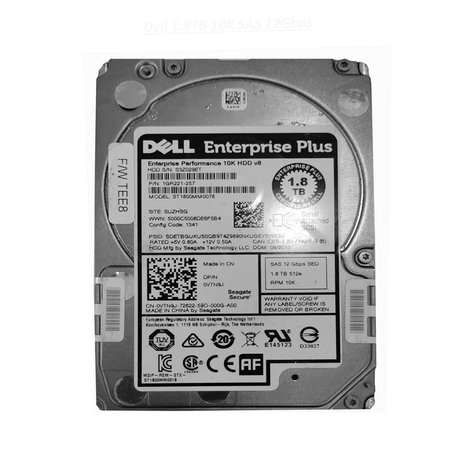 The DELL 1.8TB 12Gbps SAS Hard Drive is designed for enterprise-grade storage environments that require high capacity, exceptional reliability, and seamless performance. With its large 1.8TB capacity and high-speed 12Gbps SAS interface, it is ideal for data-intensive applications such as virtualization, cloud computing, database servers, and large-scale storage arrays.